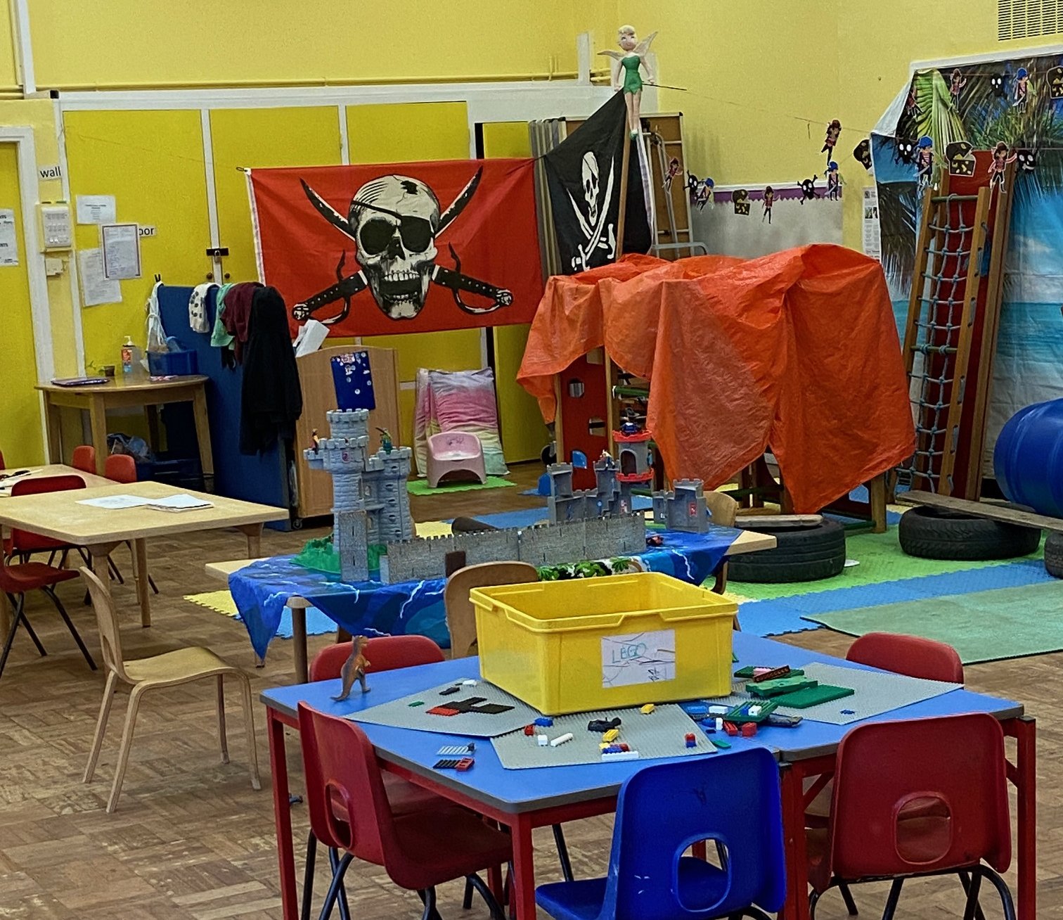 Our pre-school is held in the Methodist Church building, offering us access to the large hall space and classrooms. We have use of the kitchen and a large, enclosed garden, which we use daily.